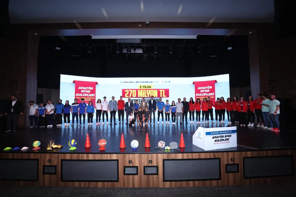 Bu kapsamda Kocaeli Kongre Merkezi'nde Malzeme Tanıtım Töreni düzenlendi. Törende konuşan Başkan Büyükakın, "2019-2024 yılları arasında amatör spora 270 milyon TL destek sağladık. Desteklerimizi artırarak sürdürecek, geleceğin şampiyonlarını Kocaeli'de yetiştirmeye devam edeceğiz" dedi.