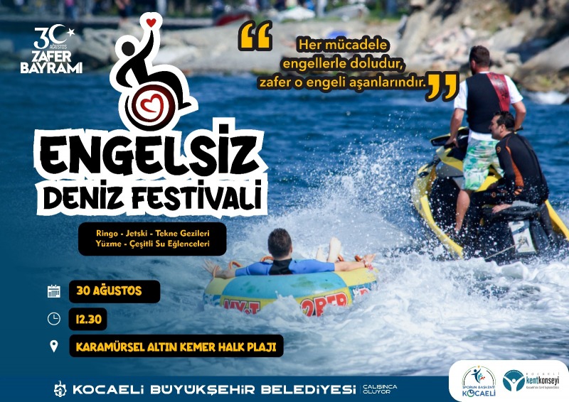 Kocaeli Büyükşehir Belediyesi ile Kent Konseyi birlikteliğinde 30 Ağustos Zafer Bayramı dolayısıyla 3. Engelsiz Deniz Festivali yapılacak. Karamürsel Altınkemer plajında gerçekleştirilecek festivalde engelli bireyler, profesyonel sporcular ve cankurtaranlar eşliğinde gönüllerince eğlenecek.