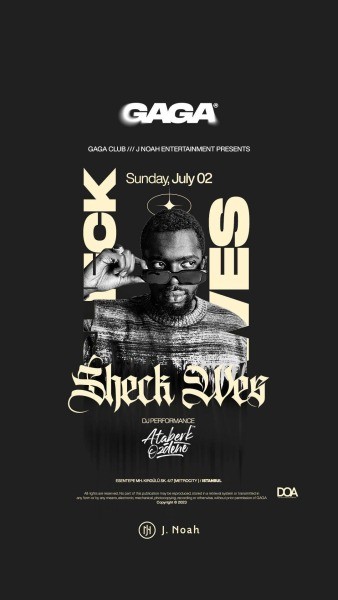 RnB müzik listelerini “Mo Bamba” adlı parçasıyla kasıp kavurmuş olan Sheck Wes, hayranlarının yoğun talebi üzerine Avrupa Turnesi’ne İstanbul ayağını da ekledi. Müslüman bir ailenin çocuğu olarak dünyaya gelmiş ve özellikle Türk kültürüne duyduğu yoğun ilgi ile de tanınan yıldız, beklenen konserin müjdesini verdi. GaGa Club ve J. Noah Entertainment ortaklığıyla gerçekleşecek olan konsere ilk günden inanılmaz bir ilgi olduğu belirtilirken, biletlerin kısa sürede tükeneceği ön görülüyor.