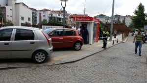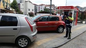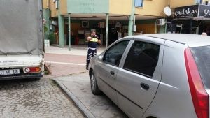 İlçemizin ikinci en büyük parkı olan Cumhuriyet Parkı'nda bulunan Ziraat Bankası ATM'sinin önünde bulunan kaldırıma park eden arabaları Emniyet Müdürlüğüne bağlı Trafik Polisi tarafından fotoğrafları çekilerek cezaları kesildi. Çevredeki vatandaşlar trafik polisinin ceza kesmesinden sonra araçlarını park eden sürücüler yüzünden çektikleri sıkıntıları dile getirdiler. Vatandaşlar, " Kaldırıma park eden araçlar yüzünden çok zor duruma düşüyoruz. Bizim yürümemiz gereken yolda arabaların olmasını kabul edemiyoruz. Trafik Polislerinin bu uygulamasını çok yerinde buluyoruz ve kendilerini bu konuda sonuna kadar destekliyoruz" dediler.