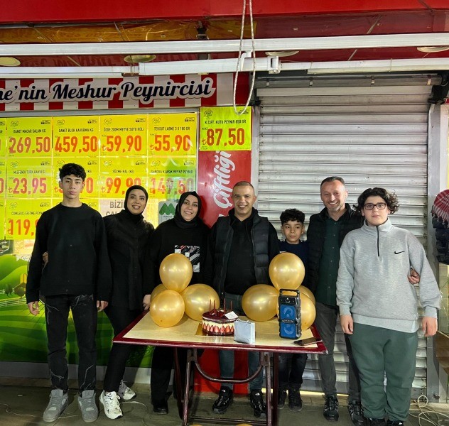 İlçemizde uzun yıllardır 19 Mayıs Caddesi üzerinde hizmet vermekte olan Kaya Çiftliği Peynirin Kalbi'nin sahibi İdris Şentürk'e, kızı Aysel Şentürk, ailesi ve çalışanlarından sürpriz doğum günü.