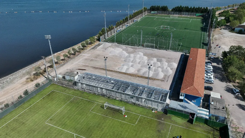 Çalışmalar kapsamında 63x49 ölçülerinde saha yapımı için alanda mıcır dolgusu yapılıyor. Kulüpler için prefabrik sosyal tesis inşa ediliyor. Tek katlı olarak yapılan bina montajı tamamlanmak üzere. Sosyal tesis içerisinde soyunma odaları, duş, tuvalet ve idari ofisler yer alacak.