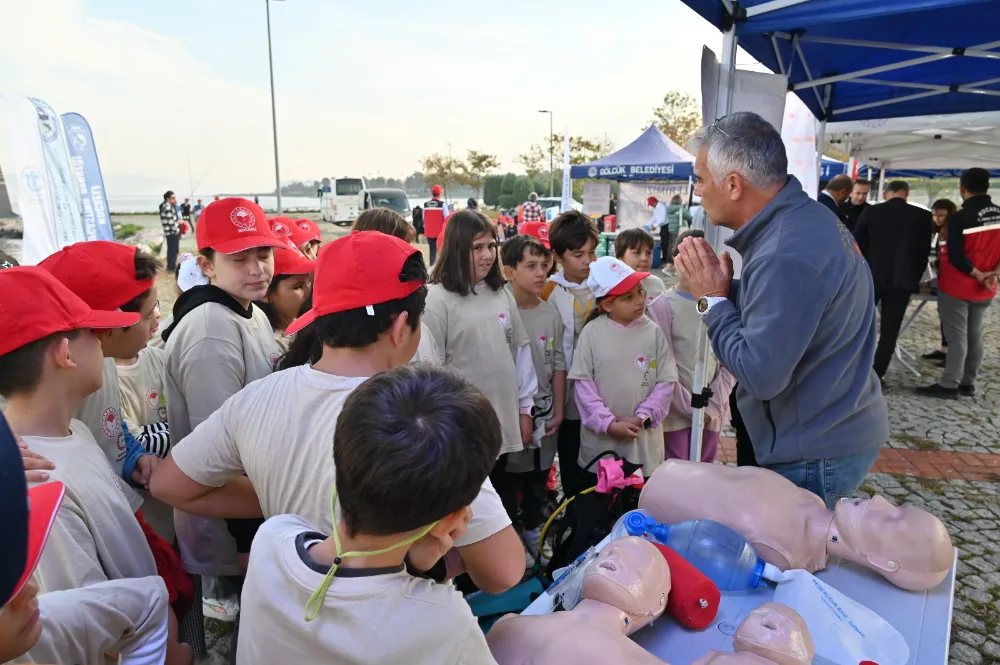 Eğitimlerin tamamlanmasının ardından Gölcük Kavaklı Sahilinde kurulan alanda deniz, balık ve çevre konularında gerçek ekipman ve dökümanların bir arada olduğu etkinliğe yaklaşık 100 öğrenci katılımı ile gerçekleştirildi. Protokol üyelerine ve öğrencilere etkinlik alanında bulunan stantlarda bölgede bulunan balık türleri, su ürünlerinin ticari ve amatör avcılık teknikleri, dalış sporu ve dalgıçlık, su ürünlerinin korunması konularında bilgiler aktarıldı. Gölcük İlçe Tarım ve Orman Müdürlüğü tarafından hazırlanan balık türleri çocuklara tanıtılarak bilinçli su ürünleri avcılığı ve tüketimi, su ürünleri koruma kontrol faaliyeti ile deniz emniyetinde görev alan Deniz Liman Şube Müdürlüğüne ait Deniz Polisi Botu, ticari balıkçılıkta kullanılan bölgemize ait balıkçı tekneleri, amatör avcılıkta kullanılan alet ve ekipmanlar, dalışta kullanılan alet ve ekipmanlar tanıtılırken, etkinlik temiz çevre bilincinin oluşturulması amacıyla sahilde temizlik yapılmasıyla son buldu.