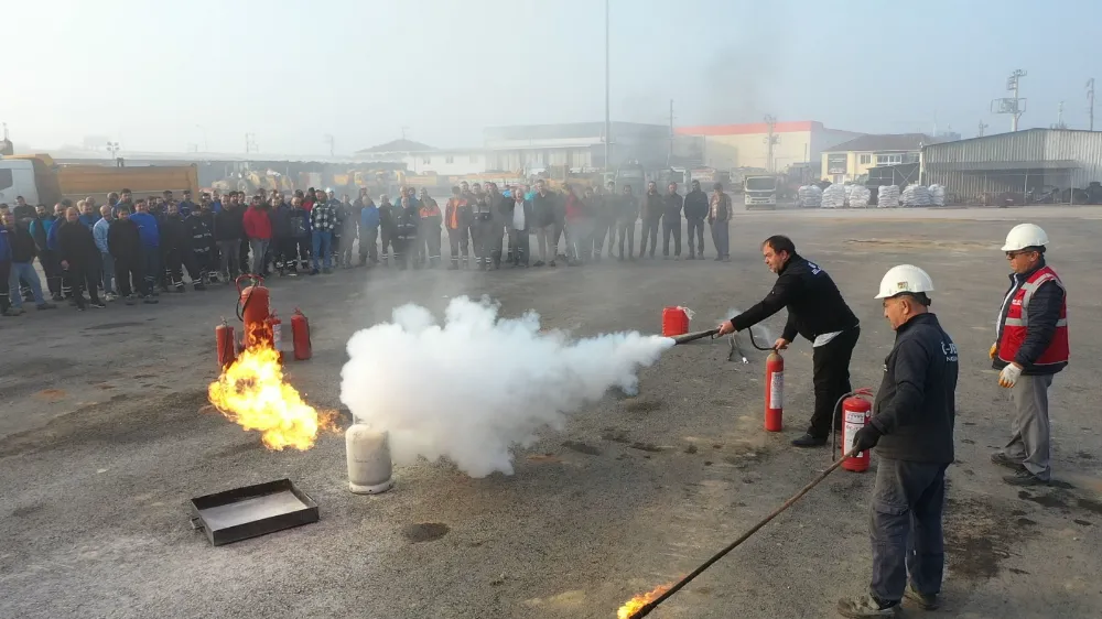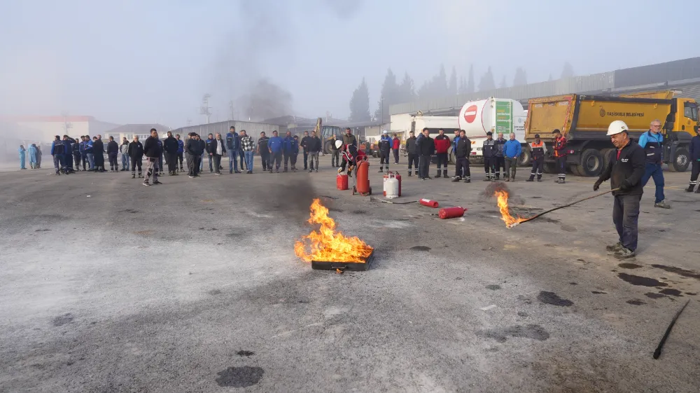 Teorik olarak verilen bilgilerin ardından personele, açık alanda kontrollü olarak çıkarılan yangına müdahale şekli pratik yapılarak gösterildi. Yangına müdahale etme yöntemleri ve yangın tüpleriyle ilgili detaylı bilgileri öğrenen belediye personelleri, sırayla yakılan ateşi başarıyla söndürdüler.