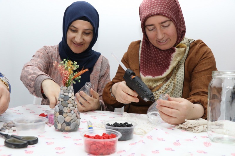 Bilinçli tüketici olma yolunda evlerde bulunan şişeler, kavanozlar ve bardakları güzel bir süs eşyası olarak değerlendirdiklerini belirten Anne Şehir katılımcıları, “Hayal gücümüzle birlikte evlerimizi süsleyecek nostaljik süs eşyaları tasarlıyoruz. Böylelikle bu atölyede evlerde bulunan fazla eşyaların çöpe atılarak çevreyi kirletme potansiyelini de bertaraf etmiş oluyoruz” dedi.