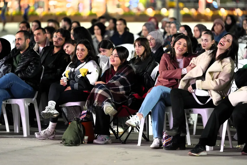 Vatandaşlar, yanlarında getirdikleri sandalyelerle meydanda konforlu bir alan oluşturdu. Aileler, küçük atıştırmalıklar ve sıcak içeceklerle filmi izlerken, Büyükşehir Belediyesi’nin sunduğu patlamış mısır ikramı akşamı daha da keyifli hale getirdi.