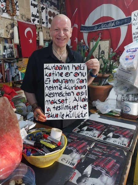 Ay, açıklamasında, ‘Kurban Bayramı tüm İslam Alemine hayırlı olsun inşallah. Kurban kes. Gıybeti kes, yalan söylemeyi kes, adam kayırmayı kes, bunları kesmezsen ne kadar kurban kesersen kes beyhude o kadar. Kurban bayramı 2023 senesinde de güzel hatırlansın ve ardından güzel hatıralar bıraksın isterim. Huzur ve barış içinde nice güzel bayramlara. Kurban Bayramı münasebetiyle Marketime gelen müşterilerime çeşitli ikram ve hediyelerde bulunarak, paylaşmanın güzelliğini yaşadım. Allah’ım beni ve tüm kardeşlerimi paylaşan kullarından olmayı nasip etsin. Kurban Yüce Allah’a teşekkür etmek, şükretmek ve varlığına inanışı göstermek amacıyla yapılan bir ibadettir. Kurban bayramı ise bu ibadetin her yıl belirli günlerde gerçekleştirilmesidir. Kurban bayramında ibadet etmek isteyenler emredilen koşulları taşıyan hayvanları Allah için keserek Allah’a feda ederler. İnsanlık tarihi kadar eski bir ibadet olan kurban kesmek ilahi dinlerin en önemli ibadeti sayılmaktadır. Kurban bayramı hicretin ikinci yılında ortaya çıkmıştır. Hz. İbrahim oğlunu kurban edecekken Allah tarafından Ey İbrahim rüyana sadakat gösterdin. İşte sana oğlunun yerine boğazlayacağın kurbanlık onu boğazla emredilmiştir. İşte kurban ibadeti günümüze kadar bu dini değer ile korunmaktadır.’
