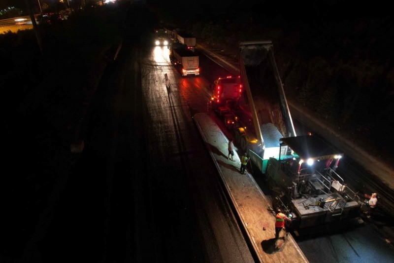 Kocaeli Büyükşehir Belediyesi tarafından TEM Kuzey Yanyol, Güzeller Organize Kavşağından Gebze Organize Sanayi Bölgesine ulaşımın sağlandığı yolda binder asfalt serimi sonrası aşınma tabakası asfalt serim çalışması da tamamlandı. 3 finişer makinesiyle akşam başlayan çalışmalar sabah saatlerinde tamamlandı. Ağır tonajlı araçlar ve servisler tarafından sıklıkla kullanılan, trafiğin yoğun olduğu bölgede yol trafiğe kapatılarak güvenlik önlemleri alındı.