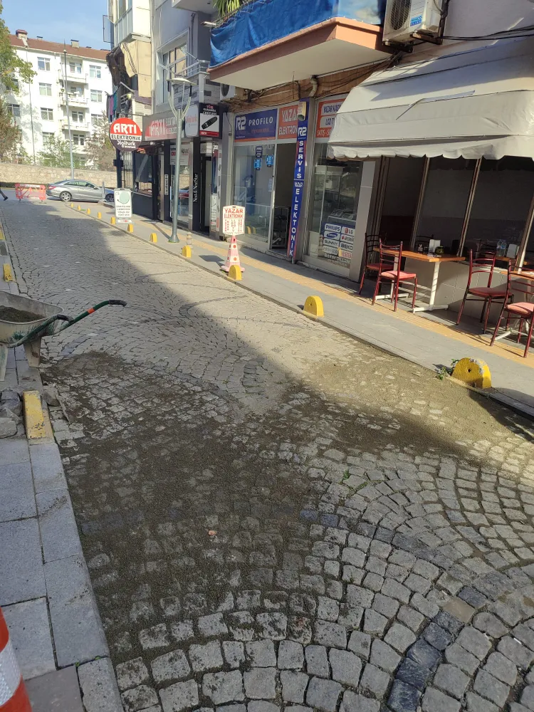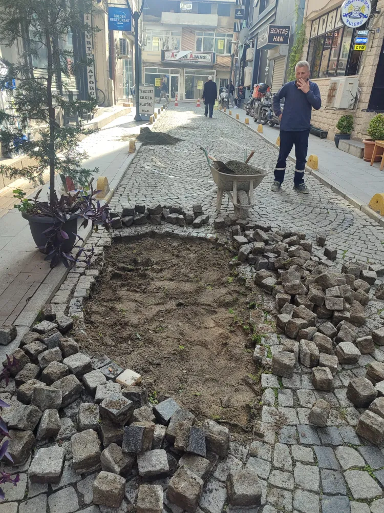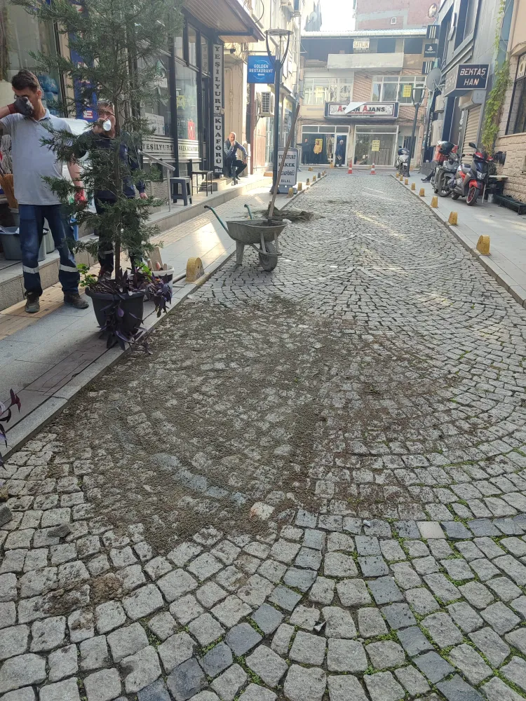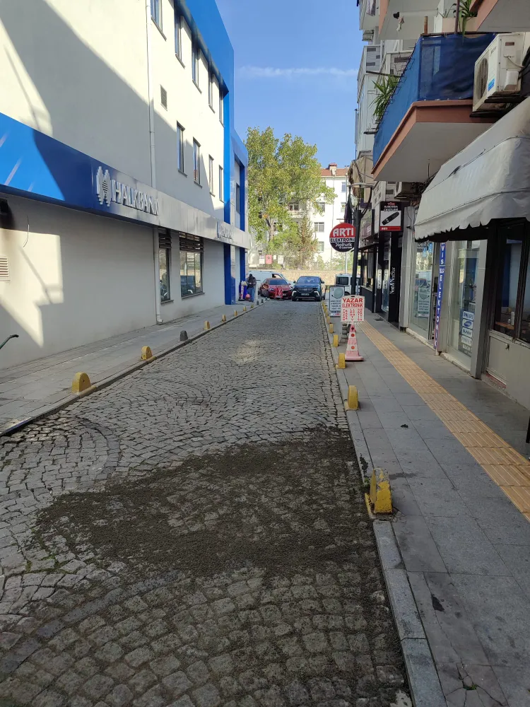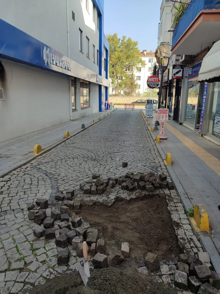 Zamanla zeminde meydana gelen çöküntü nedeniyle bozulan yol yüzeyinde çalışma başlatan ekipler, küptaşları sökerek alanda detaylı zemin düzeltme işlemi yaptı. Zemin düzenlemesinin tamamlanmasının ardından, sökülen küptaşlar yeniden özenle yerlerine döşendi. Yapılan bu çalışmayla hem yolun dayanıklılığı artırıldı hem de sürücü ve yayalar için daha konforlu bir ulaşım sağlandı.