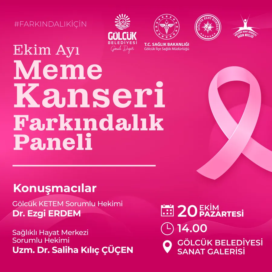 Gölcük Kent Konseyi Kadın Meclisi, Ekim Ayı Meme Kanseri Bilinçlendirme ve Farkındalık Ayı kapsamında önemli bir etkinliğe imza atmaya hazırlanıyor. Kadın Meclisi Başkanı Selma Cebeci, İlçe Sağlık Müdürlüğü işbirliği ile 20 Ekim Pazartesi günü saat 14.00’de Gölcük Belediyesi Sanat Galerisi’nde Ekim Ayı Meme Kanseri Farkındalık Paneli düzenlenecek.