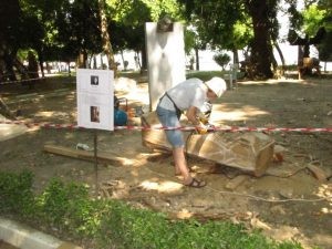 Bu yıl 24. sü düzenlenen Uluslararası Değirmendere Zühtü Müridoğlu Ahşap Heykel Sempozyumu’nda 3 yabancı,3 yerli sanatçı eserlerini çıkarmak için Değirmendere Çınarlık Meydanında kendilerine ayrılan bölümde çalışmalarını devam ediyorlar. Büyük bir titizlikle eserlerini hazırlayan sanatçılar 28 Temmuz’da yapılacak olan kapanış sergine yetiştirmek için çalışıyorlar.