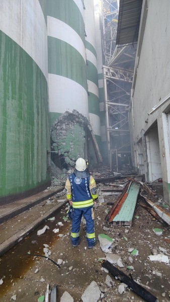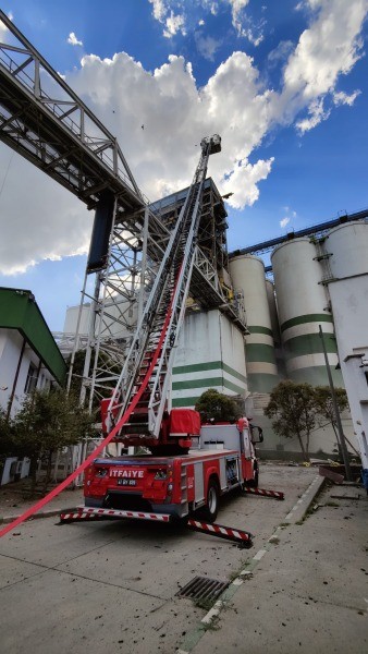 Kocaeli Büyükşehir İtfaiyesi, Derince’deki TMO silolarında meydana gelen patlamaya 15 araç 37 personelle müdahale etti