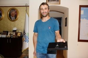 İstanbul’da belediye otobüsünde unuttuğu tabletini alması için Toplu Taşıma Dairesi Başkanlığına davet edilen Ademin babası Yaşar Öcal, belirtilen saatte Daire Başkanlığına geldi. Toplu Taşıma Dairesi Başkanı Salih Kumbar, Adem’in babasına tabletini teslim etti. Kumbar, “İstanbul Büyükşehir Belediyesi’nden arkadaşlar bize ulaştılar ve otobüslerinde unutulan bir tabletin olduğunu söylediler. Tabletin üzerinde Kocaeli Büyükşehir Belediyesi yazdığı için bizlerle irtibata geçtiler ve tableti bize gönderdiler. Biz de şimdi Adem gelemediği için tableti Adem’in babasına teslim ediyoruz. Kendisine başarılar diliyorum” ifadelerini kullandı.