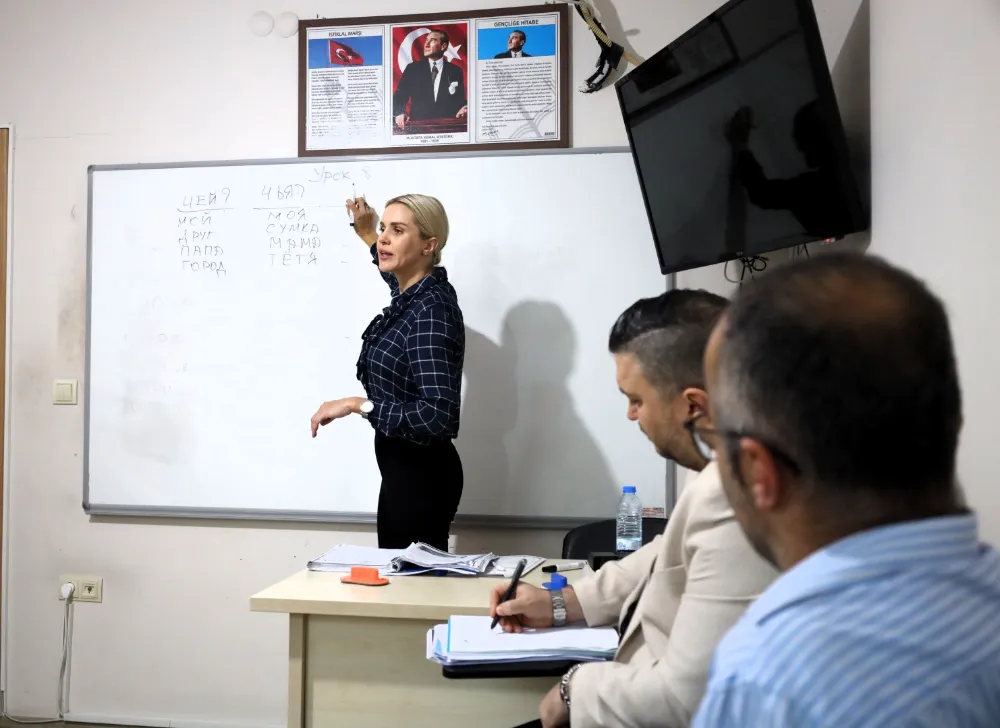 Türkiye’ye geldiğinde tek kelime Türkçe bilmediğini söyleyen Lidya Doğan, hayatını değiştiren adımı KO-MEK kurslarında attığını belirterek, “KO-MEK kurslarını reklamlardan ve arkadaşlarımdan duydum. İlk hocam Hacer Hanım’a çok teşekkür ederim. Onun sayesinde çok şey öğrendim. Dil öğrenmek için gerçekten harika bir ortam var” dedi. Türkçe yeterlilik sınavlarını başarıyla geçen Lidya Doğan, şimdi KO-MEK’te Rusça usta öğreticisi olarak görev yapıyor. “Öğrenciyken şimdi öğretmen oldum. Her grupta ayrı bir hikâye var. İşimi çok severek yapıyorum” diyen Lidya, 3 yıldır KO-MEK çatısı altında görev yapıyor.