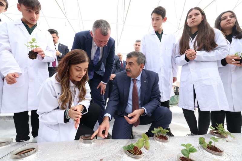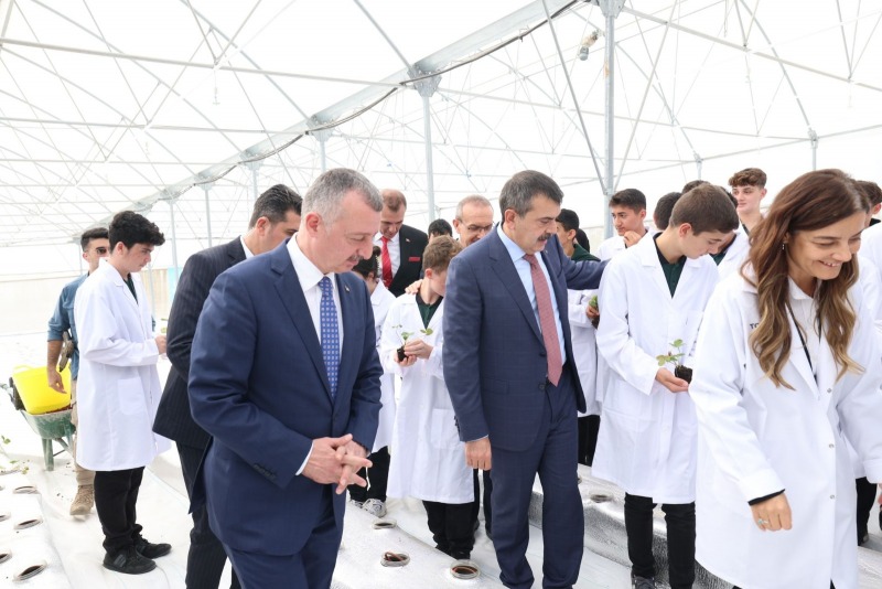 Milli Eğitim Bakanı Tekin ve Başkan Büyükakın, Derince ilçesinde yürütülen proje doğrultusunda, “Yeni Nesil Organamineral Topraksız Tarım Ar-Ge Serası” alanında öğrencilerle birlikte çilek fidesi dikti