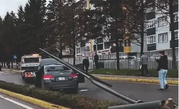Edinilen bilgiye göe seyir halindeki bir otomobil, kontrolden çıkarak orta refüjdeki aydınlatma direğine çarptı. Çarpmanın şiddetiyle yerinden sökülen dev metal direk, aracın üzerine devrilerek büyük çapta maddi hasara yol açtı. Kaza sonrası araç kullanılamaz hale geldi.