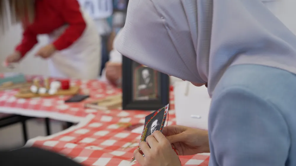 Cumhuriyet temalı ilk etkinlikler, Katı’ı ve Tezhip Atölyeleri tarafından gerçekleştirildi. 8-12 yaş aralığındaki çocukların katıldığı atölyelerde, Türk Bayrağı motifleri işlendi. “Bayrağımız Çiçek Açsın” ismini taşıyan Katı’ı Atölyesi’nde, Osmanlı döneminde önemli eserler verilen kâğıt oymacılığı sanatı üzerine bilgilendirme yapıldı. Ardından çocuklar, ay yıldızlı bayrağımızın motiflerini işleyerek kendi eserlerini hazırladı. Eğitmenlerin rehberliğinde yürütülen uygulamada çocuklar, hem el becerilerini geliştirdi hem de Cumhuriyet sevgisini sanata dönüştürmenin gururunu yaşadı. Benzer şekilde Tezhip Atölyesi’nde de Türk Bayrağı teması işlendi ve çocuklar zarif desenlerle süslenmiş eserler ortaya koydu.