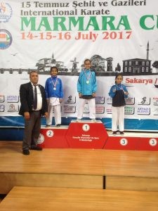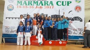 Sakarya’nın ev sahipliğinde gerçekleştirilen ve 16 ülkeden 1656 sporcunun katıldığı 4. Uluslararası Marmara Cup Karate Turnuvası’nda Kocaeli Büyükşehir Belediye Kağıtspor’lu 18 karateci, kürsüde yer aldı. Mavi beyazlı ekiplerden dördü ise takımlarda ilk üçe girme başarısını gösterdi. Bu yıl 15 Temmuz Şehitleri anısına düzenlenen turnuvanın açılışında duygulu anlar yaşandı. 15 Temmuz gecesi Ankara’daki karargah binasına ilk giden isimlerden biri olan Caner Dalkalı da turnuvaya davet edildi. Başkan Esat Delihasan, 15 Temmuz Gazisi Dalkalı’ya gösterdiği kahramanlıktan ötürü kupa ve madalya takdim etti.