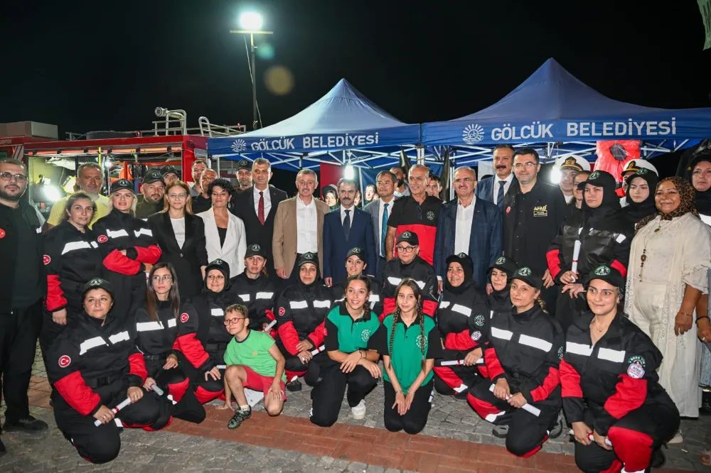 Konuşmaların ardından Gölcük Arama Kurtarma Derneği (GESOTİM)’e bağlı Türkiye’de 2. Kocaeli’nin ilk Akredite olmuş Kadın kurtarma ekibi üyeleri yemin ederek sertifikalarını protokol mensuplarının elinden aldı. Programın ardından Protokol üyeleri Kamu ve Sivil Toplum Kuruluşlarının stantlarını gezdi.