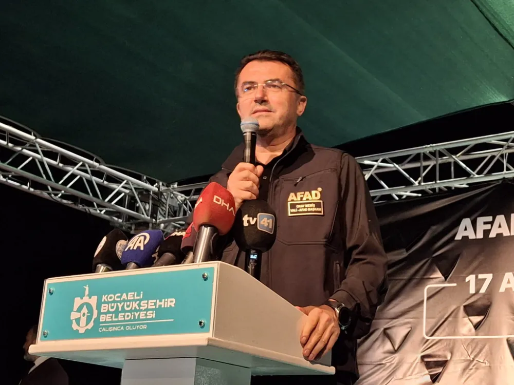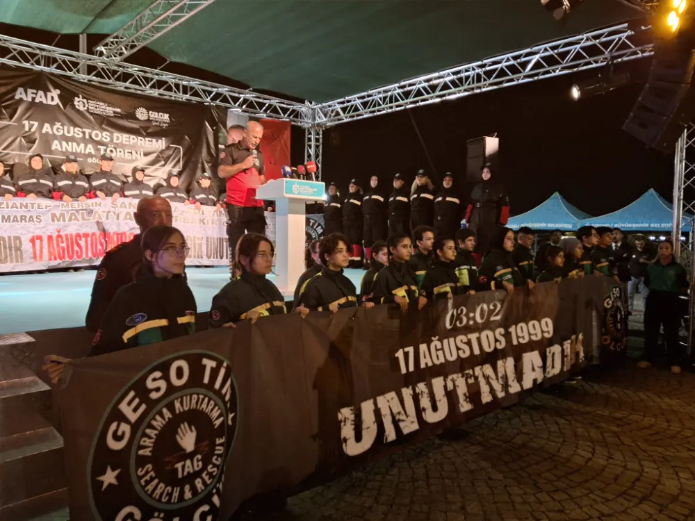 AFAD Başkanı Okay Memiş konuşmasında, “ Gölcük Bundan tam 25 yıl önce gece yarısı saat 03.02'de 7.4 büyüklüğünde gerçekten çok yıkıcı ve çok büyük bir depremle sarsıldı. Merkez üssü Kocaeli Gölcük'tü ama etkisi itibarıyla en az 10 vilayetimizi ve yaklaşık 16 milyon insanımızı etkiledi. Aslında bütün Türkiye'yi etkiledi. Çünkü bu bölge neredeyse 81 vilayetten göç alan bir bölge. Bizim resmi kayıtlarımıza göre 17.480 vatandaşımız hayatını kaybetti. Hayatını kaybeden kardeşlerimize Allah'tan rahmet diliyorum. Yaklaşık 45.000 vatandaşımız da yaralandı. 1999 depremin ardından çıkardığımız en büyük ders afetlere müdahale. Bu depremin ardından tüm kurtarma dinamiklerinin tek çatı altında toplanması gerektiği ortaya çıktı. 2009 yılında Sayın Cumhurbaşkanımızın talimatlarıyla AFAD birimi oluşturuldu önce başbakanlığa bağlıydı şu anda İçişleri Bakanlığına bağlı bir birim olarak afetleri yönetmeye gayret ediyoruz. Ülkemizde sadece bu bölgede değil her 10 yılda bir 7 büyüklüğünün üzerinde bir depremle sarsılıyor. her 10 yılda bir her 6 büyüklüğünde, her 5 yılda bir 6,5 büyüklüğünde bir depremle sarsılıyor. Bu depremlerin hepsi çok yıkıcı depremler. Bizim farkındalıkla ilgili birimimiz var. Diğer eğitimle ilgili birimlerimiz var. Aslında bu sarsıntılar bile tek başına farkındalığın çok üstünde olması gerektiğini bize zaten hatırlatıyor. Coğrafyamız bize depremin ne kadar önemli olduğunu, ne kadar gerçek olduğunu ve ne kadar etkili olduğunu da hatırlatıyor. Bu noktada hareketle çalışmalarımızı yürütmemiz gerekiyor. Afetler için 3 aşama var. Afet öncesi, afet müdahale ve afet sonrası. Afet öncesindeki en önemli çalışma kentsel dönüşüm” dedi..