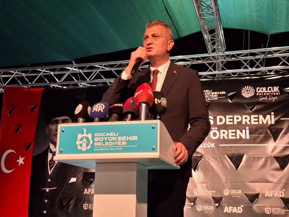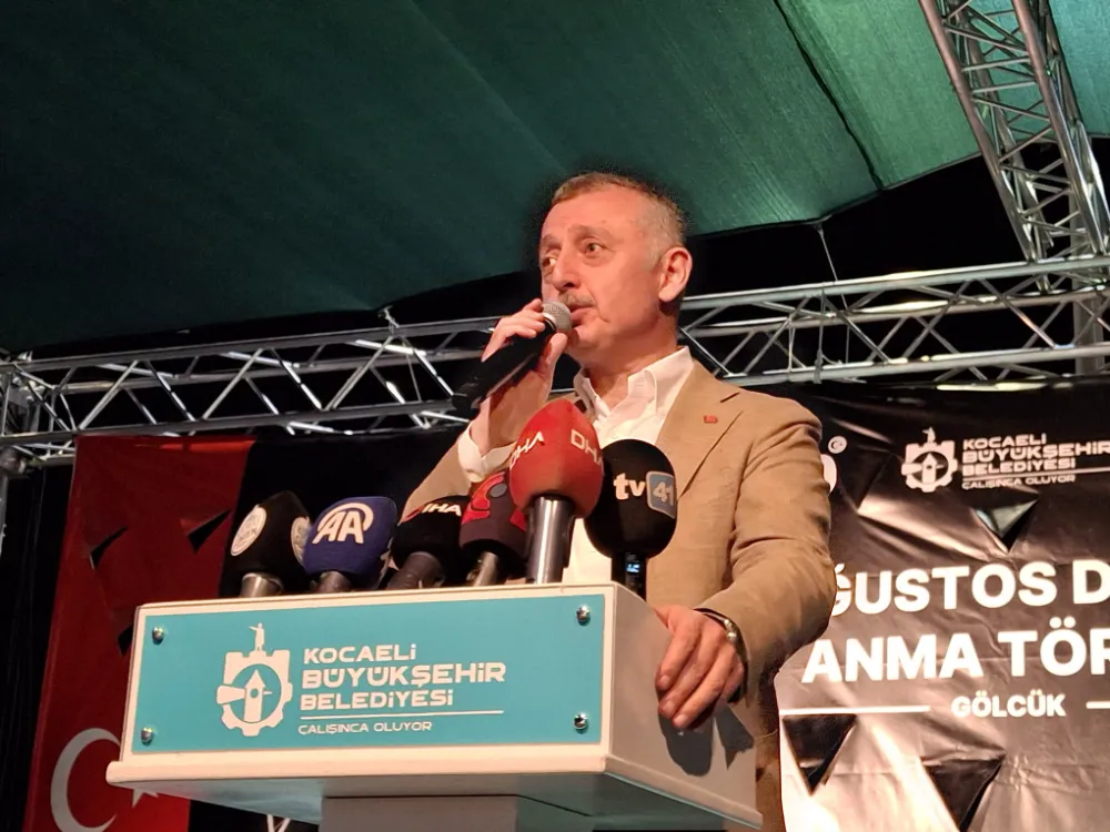 Kocaeli Büyükşehir Belediye Başkanı Doç. Dr. Tahir Büyükakın, “Kocaeli 25 yıl önce büyük bir acıya uyandı. Her yıl acıları hatırlayarak zaman geçirmemeli, asıl yapılması gereken her yıl bir önceki yıla göre daha fazla adımlar atıp afete hazır bir şehir kurmalıyız. Şehrimizi depreme hazırlamalıyız. Çok rahatlıkla ifade ed 2000'li yılların başından itibaren bugüne kadar aldığımızda kentimizde yaklaşık 30.000 tane yeni konut gerek TOKİ, gerek Emlak Konut, gerekse Kent Konut, belediyemizin şirketi eliyle yenilendi ve yeni konutlar yapıldı. Şu anda bir tanesi Gölcük Merkez Mahallesi'nde olmak üzere kentimizin farklı ilçelerinde 7 tane farklı noktada kentsel dönüşüm çalışması devam ediyor. 99 Depreminden önce yapılan binaların taramasını yaptık. 2007 yılında çıkan bina yönetmeliği ile çalışmalarımıza hız vererek çalışmalarımızı tamamladık. İnşaat Mühendisleri odasıyla birlikte 99 depreminden önce yapılan 160 bin, 2007 öncesi yapılan 250 Bin binanın taramasını yaptık. Ön taramaya göre veriler şunu gösteriyor; 130.000 bağımsız birimin ve 30.000 kadar da ticari birimin önümüzdeki süreçte dönüştürülmesi gerekiyor. Biz istediğimiz çalışmayı yapalım en güzel planları hazırlayalım, en güzel projeler elimizde olsun ama sizler bizimle yol yürümeniz gerekiyor. Bizim yeni ağıtlar yakmaya, kader demeye hakkımız yok . Aziz milletimiz, devletimiz el birliğiyle inanılmaz bir yükün altından kalktı Ama yine mi aynısını yaşayacağız. Her seferinde aynı şeyi mi yaşayacağız? Biliyoruz ki deprem öldürmüyor binalar öldürüyor. Bu binaların altında insanlar kaldıktan sonra enkazı ne kadar güzel kaldırdığımızdan mı övüneceğiz? Ne zaman akıllanacağız? bu konuda sizlerin yardımınıza ihtiyacımız var.