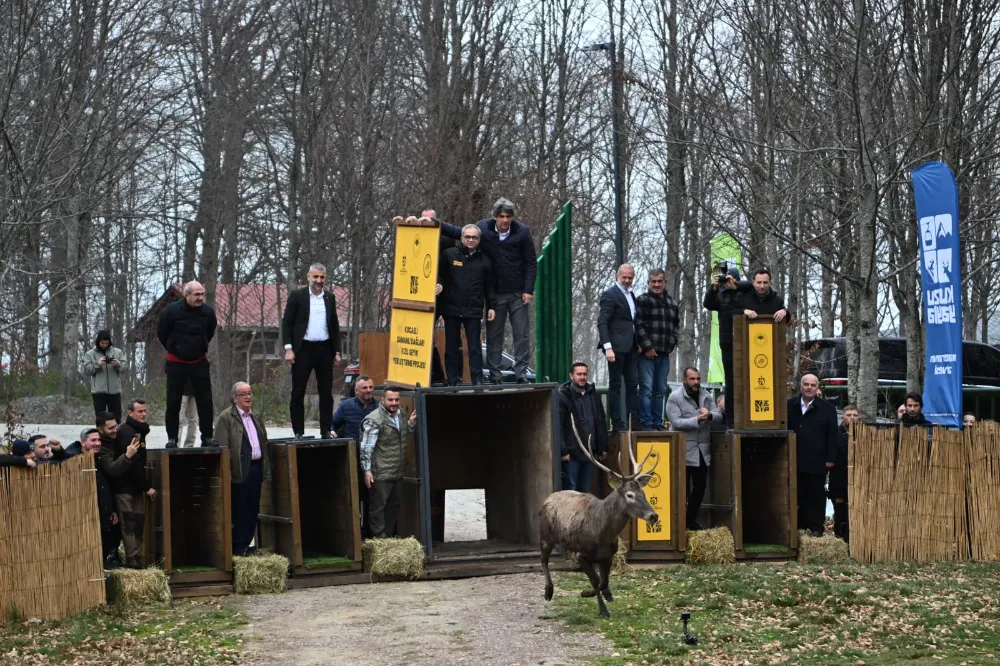 Kocaeli Büyükşehir Belediyesi, “Kızıl Geyik Salımı Projesi” kapsamında kızıl geyik popülasyonunu güçlendirecek çalışmalarına devam ediyor. Geçtiğimiz ay doğaya bırakılan 7 kızıl geyiğin ardından bu kez 8 geyik daha Kuzuyayla’da doğaya salındı. Bu yıl gerçekleştirilen ikinci salım törenine Kocaeli Büyükşehir Belediyesi Genel Sekreteri Dr. Hayri Baraçlı, Kartepe Belediye Başkanı Mustafa Kocaman, Kültür ve Sosyal İşler Dairesi Başkanı Murat Yavuz ve ilgili kurum temsilcileri katıldı. Tarım ve Orman Bakanlığı Doğa Koruma ve Milli Parklar Genel Müdürlüğü iş birliğiyle yürütülen proje, bölgedeki yaban hayatını canlandırma amacıyla önümüzdeki yıl da geyik salınımlarına devam edecek.