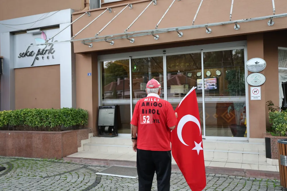 Kocaeli Büyükşehir Belediyesi, Kocaeli Stadyumu’nda oynanan Türkiye-Gürcistan 2026 Dünya Kupası Avrupa Elemeleri maçını yerinde izlemek üzere ilimize gelen “Amigo Birol” lakaplı Birol Ertan’ı (87) ağırladı. Milli Takım’ın 52 yıldır peşinden ayrılmayan ve “Ay-Yıldızlı” ekibimizin en sadık taraftarlarından biri olarak bilinen 87 yaşındaki Birol Amca, Kocaeli Büyükşehir Belediyesi tarafından misafir edildi. Kocaeli Büyükşehir Belediyesi Zabıta Dairesi Başkanlığı personellerinin eşlik ettiği Amigo Birol, konaklaması için Seka Park Otel’e yerleştirildi.
