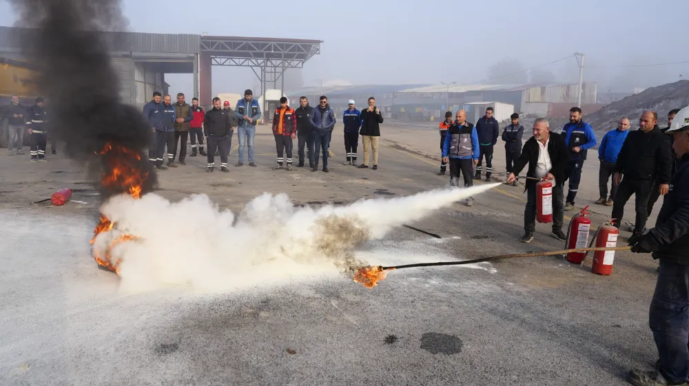 Teorik olarak verilen bilgilerin ardından personele, açık alanda kontrollü olarak çıkarılan yangına müdahale şekli pratik yapılarak gösterildi. Yangına müdahale etme yöntemleri ve yangın tüpleriyle ilgili detaylı bilgileri öğrenen belediye personelleri, sırayla yakılan ateşi başarıyla söndürdüler.