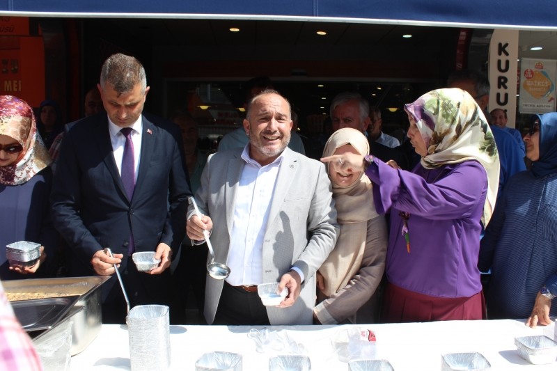 Başkan Sezer ve AK Parti İlçe Başkanı Çetin Seymen’de, vatandaşlara aşure dağıtırken, vatandaşlar Başkan Yelken ve Karayel’e Allah kabul etsin temennilerini iletti. Başkan Sezer ve İlçe Başkanı Seymen, ‘İlçe Kadın Kollarımıza ve İlçe Gençlik Kollarımıza bu örnek etkinliklerinden ötürü teşekkür ediyoruz. Muharrem ayı dinimiz içinde çok önemli bir aydır. ‘Allah yapılan hayırları kabul eylesin’ dediler.