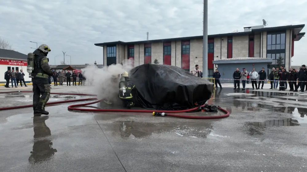 Eğitimin uygulama bölümünde ise yangın battaniyesi kullanımı ile söndürme stratejileri ele alındı. Simülatör araçta gerçekleştirilen fiili batarya yangınına yangın battaniyesi ile muhafaza altına alma işlemi yapıldı. Kocaeli itfaiye personeli tarafından gerçekleştirilen uygulama adım adım katılımcılara aktarıldı. Su ile soğutma ve söndürme işlemi uygulaması da eğitim kapsamında gerçekleştirildi.