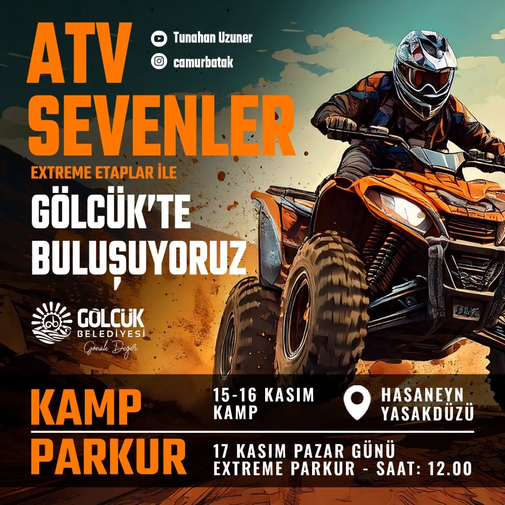 Gölcük Belediyesi 15-16-17 Kasım tarihleri arasında Hasaneyn Yasakdüzü’nde heyecan dolu bir etkinliğe imza atacak. Etkinlik kapsamında Gölcük, ATV tutkunlarının buluşma yeri olacak. Adrenalin tutkunu ATV sevenler, 15 Kasım Cuma günü Yasakdüzü’nde kamp yerinde bir araya gelecek. Çeşitli etkinliklerle devam edecek buluşma, 17 Kasım Pazar günü saat 12.00’da başlayacak parkur gösterileri ile devam edecek. Heyecan dolu parkurda ATV tutkunları hünerlerini sergileyecek.