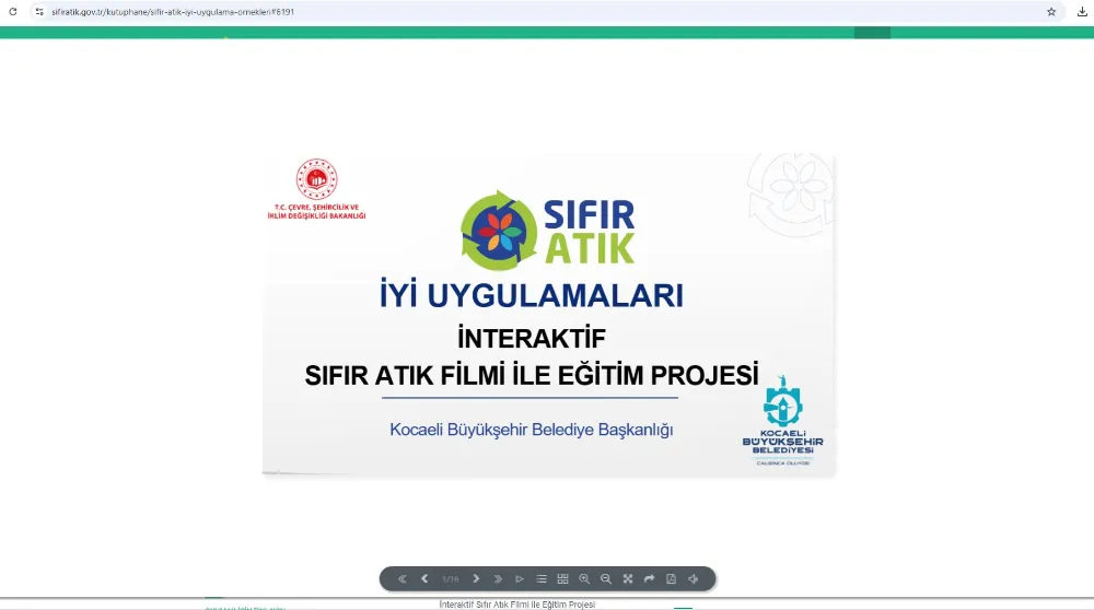 Kocaeli Büyükşehir Belediyesi, hem atıkların kaynağında ayrı toplanması hem de geri dönüşüm konusunda farkındalık yaratmak için çalışmalarına devam ediyor. Sıfır Atık Projesi’nde örnek ve koordineli çalışmalar yürüten Büyükşehir, okullarda interaktif yöntemle sıfır atık farkındalık çalışması yaparak, öğrencilere interaktif yöntemle sıfır atığı öğretiyor. Çevre, Şehircilik ve İklim Değişikliği Bakanlığı, eğitici ve eğlenceli bir ortamda sıfır atık projesini anlatan Büyükşehir’in bu uygulamasını “İnteraktif Sıfır Atık Filmi ile Eğitim Projesi” başlığıyla örnek gösterdi. Proje ile ilgili detaylar bakanlığın sıfır atık web sayfasında yayınlandı.