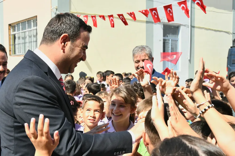 Tam bir bayram havası yaşanan okulda Başkan Özlü büyük bir sevgi seliyle karşılanırken, beraberindeki heyet ile birlikte sınıfları tek tek gezerek yeni eğitim ve öğretim yılında tüm öğretmenlere ve öğrencilere başarılar diledi.