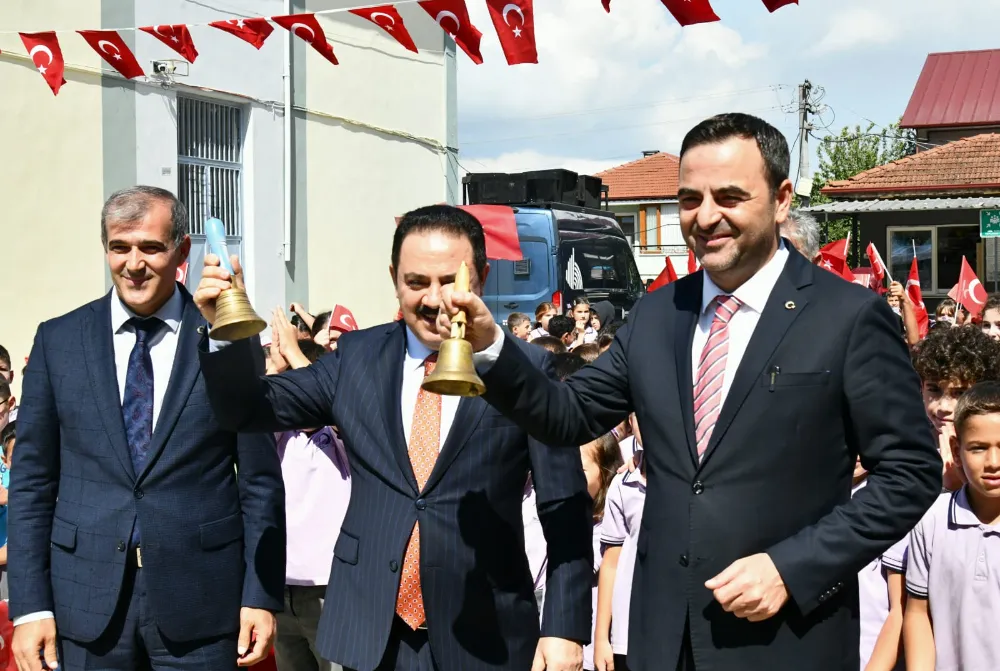 Saygı duruşu ve İstiklal Marşı ile başlayan törende günün anlam ve önemine ilişkin konuşmalar yapıldıktan sonra ilk ders zilini Kaymakam Şenel ve Başkan Özlü birlikte çaldılar.