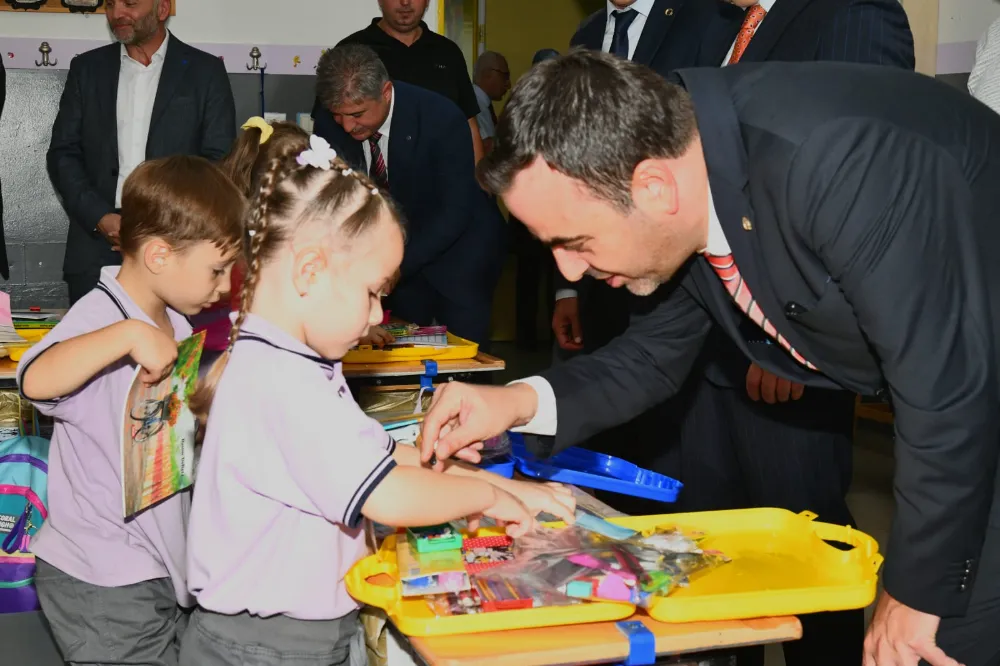 Başkan Özlü ve beraberindekiler ilk kez okulla tanışan 1. Sınıfları ziyaretlerinde ise renkli anlar yaşadılar. Sevinçleri ve heyecanları gözlerinden okunan mini mini birler, Yasin abilerinin dağıttığı kırtasiye seti ile daha da mutlu oldular.