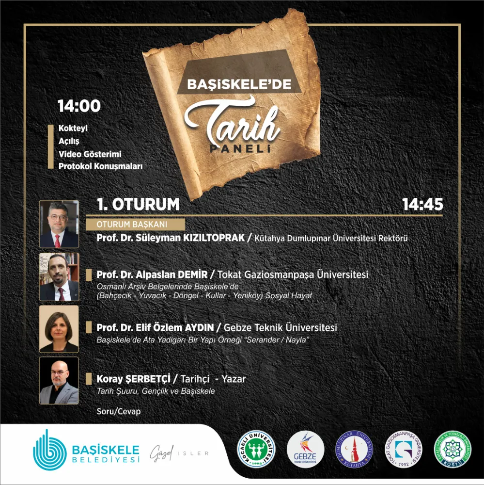 Açılış konuşmaları başlayacak program iki oturum halinde gerçekleştirilecek. Kütahya Dumlupınar Üniversitesi Rektörü Prof. Dr. Süleyman Kızıltoprak’ın oturum başkanlığı yapacağı panelin ilk oturumunda, Tokat Gaziosmanpaşa Üniversitesi Öğretim Üyesi Prof. Dr. Alpaslan Demir Osmanlı Arşiv Belgelerinde Başiskele’de (Bahçecik-Yuvacık-Kullar-Döngel-Yeniköy) Sosyal Hayat’ı anlatacak. Gebze Teknik Üniversitesi Öğretim Üyesi Prof. Dr. Elif Özlem Aydın, Başiskele’de Ata Yadigârı Bir Yapı Örneği “Serander/Nayla” konusunu ele alırken; Tarihçi-Yazar Koray Şerbetçi, Tarih Şuuru, Gençlik ve Başiskele hakkında katılımcılara önemli bilgiler aktaracak.