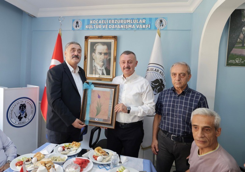 Kocaeli Büyükşehir Belediye Başkanı Tahir Büyükakın, Kocaeli Erzurumlular Kültür ve Dayanışma Vakfı Başkanı Ahmet Önal ve yönetiminin misafiri oldu. Sıcaklığı ve misafirperverliği için Dadaşlara teşekkür eden Başkan Büyükakın, “Erzurumlu hemşerilerimizle birlik ve beraberlik içinde şehrimize değer katmaya devam edeceğiz. Bugün bir kez daha bizlere gösterdikleri ilgi ve alaka için vakıf yönetimimizin kıymetli mensuplarına ayrı ayrı teşekkür ediyorum” dedi. Vakıf binasında gerçekleşen birlikte, yerel, ulusal ve uluslararası meseleler ele alınırken, “Yerel yönetimler yani bu makamlar birer emanettir. Yani kadim milletimizin bize emanetidir. Biz vatandaşımızın emanetine sahip çıkıyoruz. Bu kentin eski anlamıyla şehremini yani belediye başkanı olarak bu emanete kutsal bir görev olarak bakıyoruz” ifadesini kullandı.