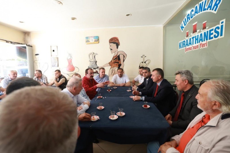 Kocaeli Büyükşehir Belediye Başkanı Tahir Büyükakın,Kandıra KOMEK yılsonu sergisinin ardından ilçe merkezindeki esnafı ziyaret etti, vatandaşlarla hasbihal etti. Kandıra’da uzunca yıldır hizmet veren Kurcanlar Kıraathanesi’nde çay içen Başkan Büyükakın, “Tevazu, samimiyet ve gayretle dünden daha çok çalışıyoruz. Kandıra’mızın yüce gönüllü insanlarına bize gösterdikleri samimi ilgi için bir kez daha teşekkür ediyorum” ifadelerini sarf etti.