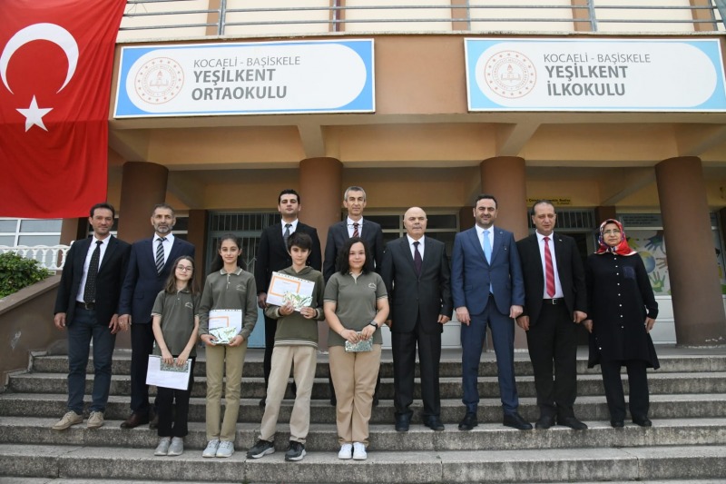 Yeşilkent İlkokulu ve Ortaokulu’nda düzenlenen karne törenine Başiskele Kaymakamı Necip Çakmak ile birlikte katılan Belediye Başkanı M. Yasin Özlü öğrenciler tarafından çiçeklerle karşılandı.