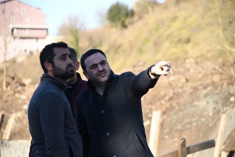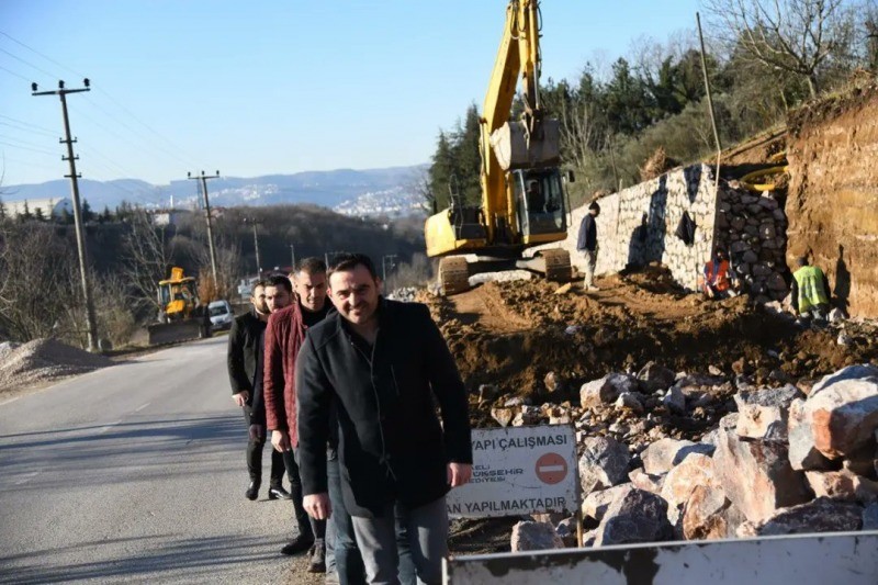 Yol genişletme ve taş duvar çalışmaları süratle devam eden caddedeki çalışmaları Başiskele Belediye Başkanı M. Yasin Özlü de adım adım yakından takip ediyor.