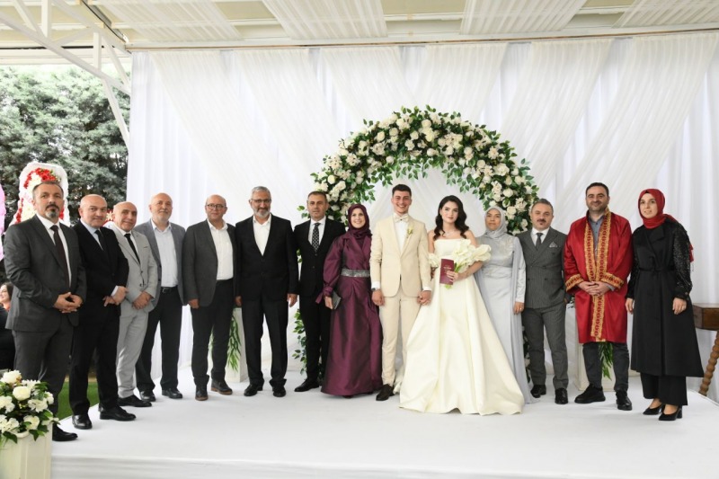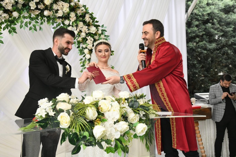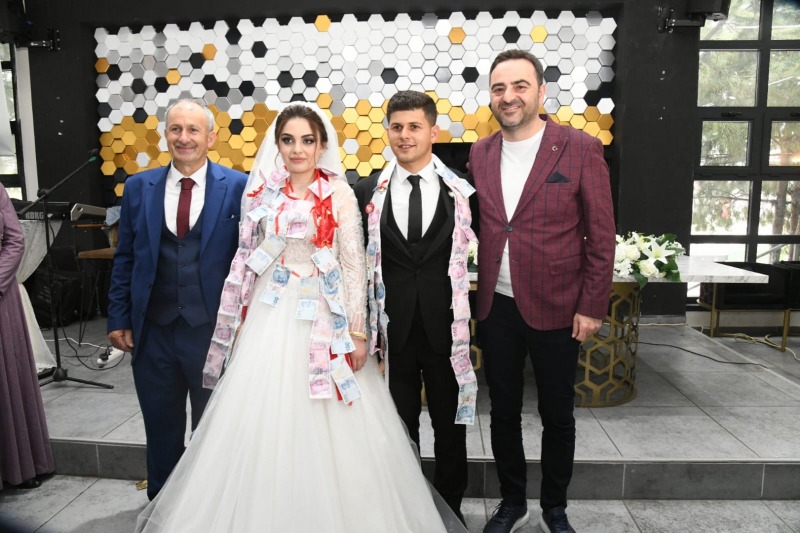 Dünya evine giren genç çiftlerin ve ailelerinin en mutlu günlerine şahitlik ederek ortak olan Başkan M. Yasin Özlü, çiftlere ömür boyu mutluluklar diledi. Ayrıca çiftlere Ay-Yıldızlı Türk Bayrağımızı, nikâhta imza attıkları kalemi ve düğün hediyelerini takdim etti.