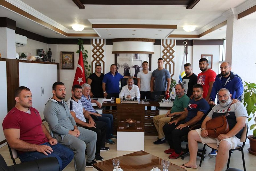Karamürsel Belediye Başkanı İsmail Yıldırım, Karamürselli güreşçileri Edirne’de gerçekleşecek 656.Kırkpınar Yağlı Güreşleri Müsabakalarına uğurladı. Karamürsel Belediye Başkanlığı makamında gerçekleştirilen uğurlama ziyaretinde, yağlı güreşin yaşayan efsanesi, 2 altın kemerin ebedi sahibi, Kırkpınar’da 9 kez başpehlivan olarak Cumhuriyet tarihinin en fazla başpehlivanı olma rekorunun uzak ara sahibi ünlü başpehlivan Ahmet Taşçı ve Karamürsel Belediye Başkanı İsmail Yıldırım adına güreşen Başpehlivanlar ve pehlivanlar katıldı. Karamürsel Belediye Başkanı İsmail Yıldırım ziyaret sırasında güreşçilere nasihatte bulunarak Altınkemer sahibi ünlü başpehlivan Ahmet Taşçı’yı örnek almalarını istedi. Azmi ve başarısı ile tüm dünyaya örnek olan Efsane Başpehlivan Ahmet Taşçı’nın Karamürselli olmasının büyük bir şans olduğunu dile getiren Başkan Yıldırım ’’ Eğer birini kendinize örnek alacaksanız Ahmet Taşçı’yı örnek alın. Usta-çırak ilişkisine her zaman önem verin, saygılı olun ve dopingden uzak durun” dedi. Başkan Yıldırım ayrıca güreşçilerin Edirne’den başarı ile dönmelerini temenni ederek; ‘’Cenab-u Allah hepinizin kalbine göre versin, çalışmalarınızın ve gayretlerinizin karşılığını beklediğiniz Edirne Kırkpınar Yağlı Güreşlerinde, zaferler ile dolu bir yıl geçirmenizi dilerim.’’ Dedi.