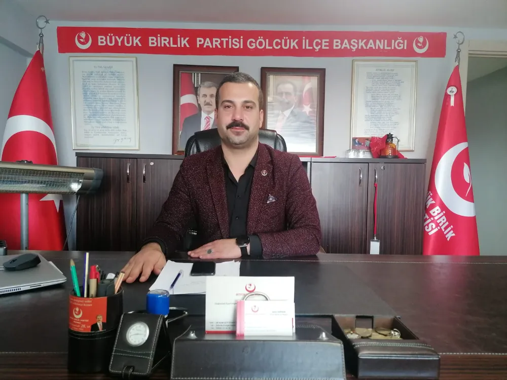 Büyük Birlik Partisi (BBP) Gölcük İlçe Başkanı Şahin Akpınar, haftalık açıklamasında önemli konulara değindi. Başkan Akpınar, ilçemizde eski Sanayi sitesi ve askeriyeden alınan alana doğru projeler uygulanması gerektiğine vurgu yaptı.