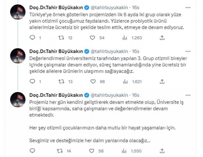 Engellilere yönelik duyarlı yaklaşımıyla her zaman takdir toplayan Kocaeli Büyükşehir Belediye Başkanı Tahir Büyükakın, 2 Nisan Otizm Farkındalık Günü’nde PROBES projesinin geldiği son noktayı paylaştı. Başkan Büyükakın, “Otizmli bireyler için Sağlık Bilimleri Üniversitesi ile Probiyotik Ürün Geliştirme, Üretme ve Beslenme Danışmanlığı imzalamıştık. Protokolün ardından üniversitemizle birlikte AR-GE ve saha çalışmaları ile otizm tanısı bulunan bireyler tespit ettik. Belirlediğimiz ailelerimizle görüşmeler yaparak, üretimi ve değerlendirmesi üniversitemiz tarafından yapılan probiyotik ürünlerin ailelerimize ulaşmasını sağladık. Türkiye’ye örnek gösterilen projemizden ilk 6 ayda iki grup olarak yüze yakın otizmli çocuğumuz faydalandı. Yüzlerce probiyotik ürünü ailelerimize ücretsiz teslim ettik, etmeye de devam edeceğiz” ifadelerini kullandı.