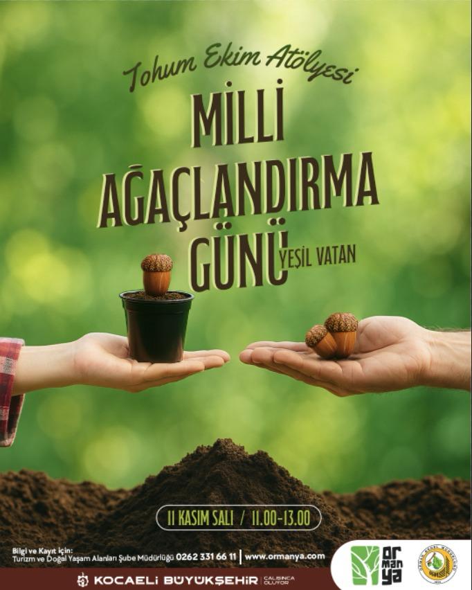 Kocaeli Büyükşehir Belediyesi, doğa sevgisini ve çevre bilincini artırmak amacıyla “Milli Ağaçlandırma Günü” kapsamında anlamlı bir etkinliğe imza atıyor. 11 Kasım Salı günü (yarın) Ormanya’da gerçekleştirilecek Tohum Ekim Atölyesi, katılımcılara tohumdan fidana uzanan süreci yakından tanıma fırsatı sunacak. Etkinlik boyunca doğaseverler, uzman eğitmenler eşliğinde tohum ekimi yaparak ağaçlandırma çalışmalarına destek verecek. Çocuklar ve yetişkinlerin birlikte katılabileceği atölyede doğayla iç içe keyifli anlar yaşanacak ve “Yeşil Vatan” bilinci pekiştirilecek.