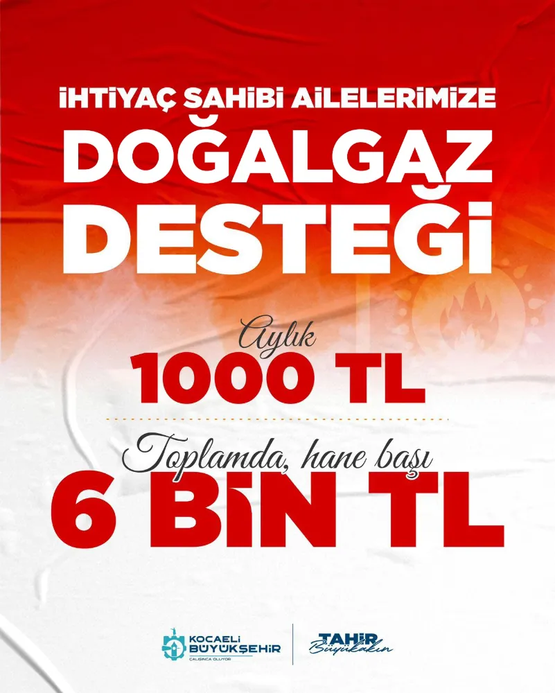 Kocaeli Büyükşehir Belediyesi kış mevsiminin kendini hissettirmeye başladığı bugünlerde düzenli gıda desteği alan ailelere yakacak desteği ödemelerine başladı. İhtiyaç sahibi vatandaşlara her yıl verilen yakacak desteği Kocaeli Büyükşehir Belediye Başkanı Tahir Büyükakın’ın talimatlarıyla; Kasım-Nisan ayları boyunca 6 ay geçerli olmak üzere aylık 1000 TL, toplamda ise 6 bin TL olarak vatandaşların 41 Su Nakit kartlarına yatırılacak. Bu kapsamda yakacak desteğinin ilk ay ödemesi (Kasım ayı) su nakit kartlara yatırıldı.