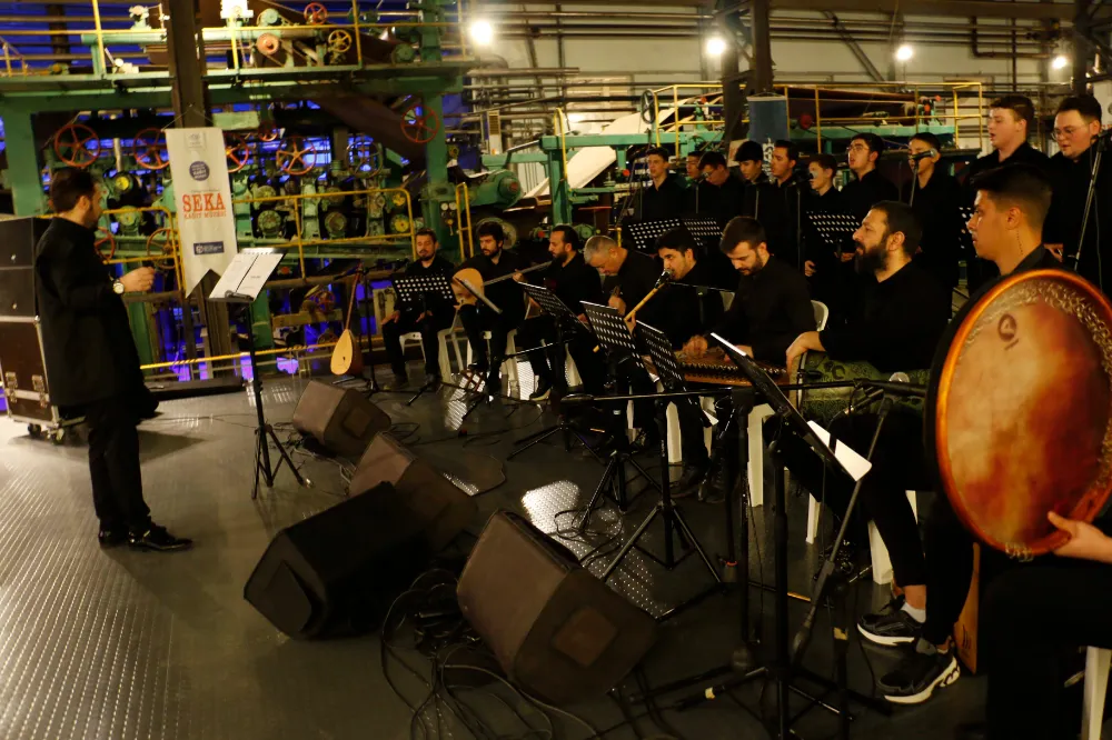 Aşk-ı Niyâz Musiki Derneği Başkanı ve Şefi Arif Ustacık’ın liderliğindeki grup, keman, klasik kemençe, kanun ve ney gibi enstrümanlarla zenginleşen bir müzik ziyafeti sundu. Koro eşliğinde gerçekleştirilen konser, SEKA Kâğıt Müzesi’nin tarihi Makine Salonu’nda katılımcılara unutulmaz bir deneyim yaşattı. Yoğun katılımla gerçekleşen ve büyük beğeni toplayan etkinlikte kadim tekke musikisinden örneklere ve irfan türkülerine yer verildi.