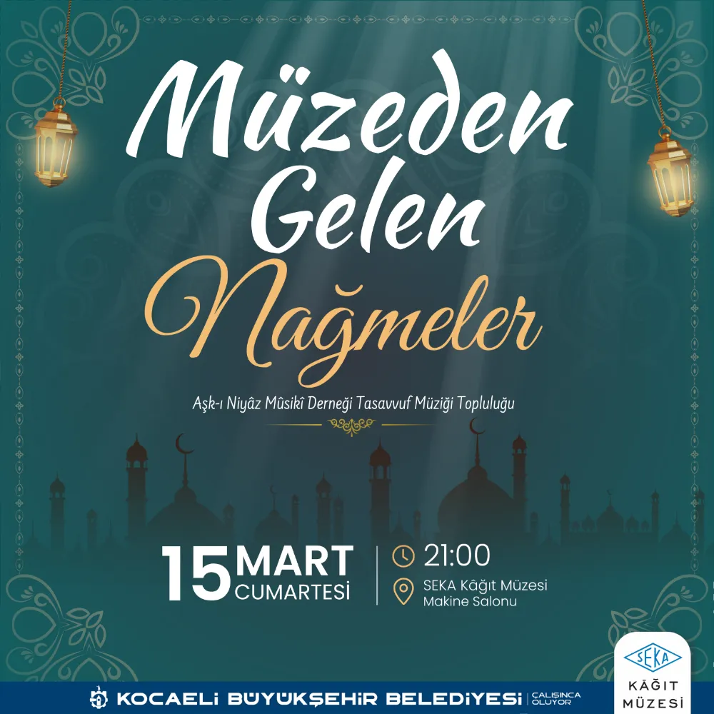 Büyükşehir Belediyesi Kültür ve Sosyal İşler Dairesi Başkanlığı’na bağlı olarak hizmet veren SEKA Kâğıt Müzesi, Ramazan ayının ruhunu ve manevi atmosferini yansıtacak özel bir müzik etkinliğine ev sahipliği yapacak. Müze konsepti içinde ilk kez gerçekleştirilecek olan etkinlik, “Müzeden Gelen Nağmeler” başlığıyla kadim tekke musikisinden irfan türkülerine yer verecek.