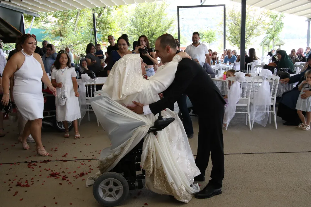 Engelli dostu Kocaeli Büyükşehir Belediyesi’nin engelleri aşan Engelsiz Taksi hizmeti bu kez de Saliha Sarıkaya-Metin Karaman çiftine düğün arabası olarak hizmet verdi. Akülü sandalyeyle hayatını idame eden ev hanımı Saliha Sarıkaya(43), düğününe engelsiz bir şekilde gidebilmek için Kocaeli Büyükşehir Belediyesi’ne başvurdu. Bunun üzerine damat Metin Karaman(41) gelini almaya Büyükşehir’in gelin arabasına dönüştürülen Engelsiz Taksi aracıyla gitti. Karamürsel’deki gelin evinde yaşanan heyecan ve mutluluk ise görülmeye değerdi. Damat Metin Karaman ile gelin Saliha Sarıkaya, Büyükşehir’in Engelsiz Taksi aracına binerek düğün salonuna geçti.
