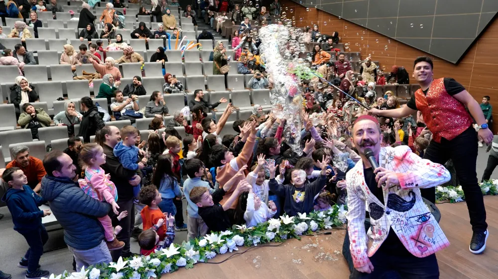 Ramazan’ın manevi iklimine uygun sahne gösterilerini izlemek için konferans salonunu velileriyle birlikte hınca hınç dolduran çocuklar, geleneksel kültürümüzün en önemli sahne gösterilerinden biri olan Karagöz ve Hacivat ile hem eğlendiler hem de birçok konuda önemli bilgiler öğrendiler. Daha sonra bubble gösterisini izleyen çocuklar, köpüklerle oluşturulan su balonlarını büyük bir heyecan ve merakla izlediler. İrili ufaklı balonlar havada uçuşurken, çocuklar da balonları patlatabilmek için birbiriyle yarıştı. Çeşitli yarışmalarla da interaktif hale getirilen etkinlikte çocuklar doyasıya eğlendiler.